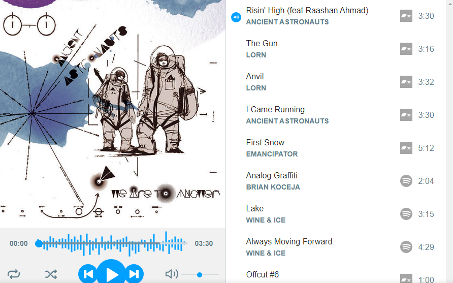 Open Source HTML5 Web Audio Library. Design your web audio player, the way you want. No dependencies are required. AmplitudeJS is a lightweight JavaScript library that allows you to control the design of your media controls in your webpage, not the browser. No dependencies (jQuery not required). AmplitudeJS is available under the MIT License. Open-source software is not sustainable without proper financial support. Maintaining an open-source project takes a lot of effort and resources. If you are very thankful for what you can do with AmplitudeJS or if you are using AmplitudeJS to make any sort of revenue, we kindly ask that you contribute any resources available to keep the community growing. Autogenerate waveforms and visualizations using the Web Audio API. Public functions for unlimited control! All of our example players have the code available on our "AmplitudeJS Example Players" repository.