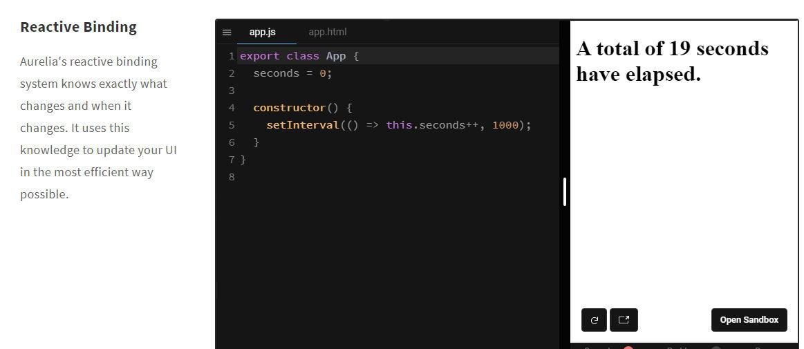 Aurelia is a modern, front-end JavaScript framework for building browser, mobile, and desktop applications. It focuses on aligning closely with web platform specifications, using convention over configuration, and having minimal framework intrusion. Basically, we want you to just write your code without the framework getting in your way. This library is part of the Aurelia platform. It contains the aurelia-framework library, which brings together all the required core aurelia libraries into a ready-to-go application-building platform. Aurelia applications are built by composing a series of simple components. By convention, components are made up of a vanilla JavaScript or Typescript class, with a corresponding HTML template. Aurelia's standards-based, unobtrusive style makes it the only framework that empowers you to build components using vanilla JavaScript or TypeScript. If you know modern JS and HTML, there's little more to learn to build even the most complex apps.