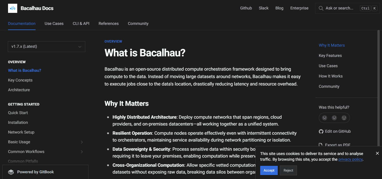 Bacalhau is a decentralized compute platform for running jobs on data stored across distributed networks, like IPFS or Filecoin, without moving the data to centralized cloud environments. It allows developers to run containerized workloads close to where the data lives, reducing latency, cost, and privacy risks. Bacalhau supports various runtime environments and is designed to make decentralized data processing as accessible as traditional cloud computing. It’s especially useful for large-scale AI/ML jobs, scientific research, and content indexing in Web3 ecosystems.