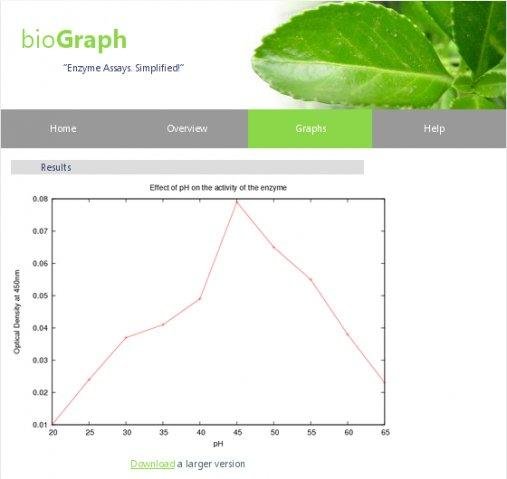 bioGraph is a set of PHP scripts which can be used in enzyme assays. Currently, this includes pH, Temperature, Michaelis-Menten and Lineweaver-Burke plots.