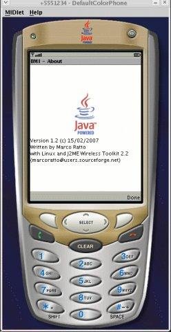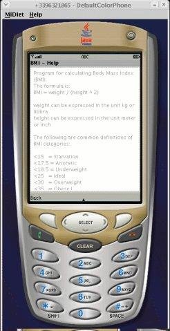 J2ME program for calculating Body Mass Index (BMI).