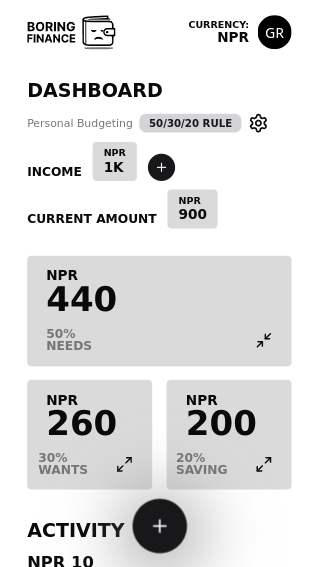 A minimalist and modular finance tracking web application that implements the 50-30-20 budgeting rule