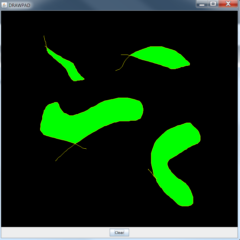 This is Simple java implementation of bucket fill algorithm .Copy the code and Run in Console or IDE. Draw your shapes and click in the middle to fill the shapes.