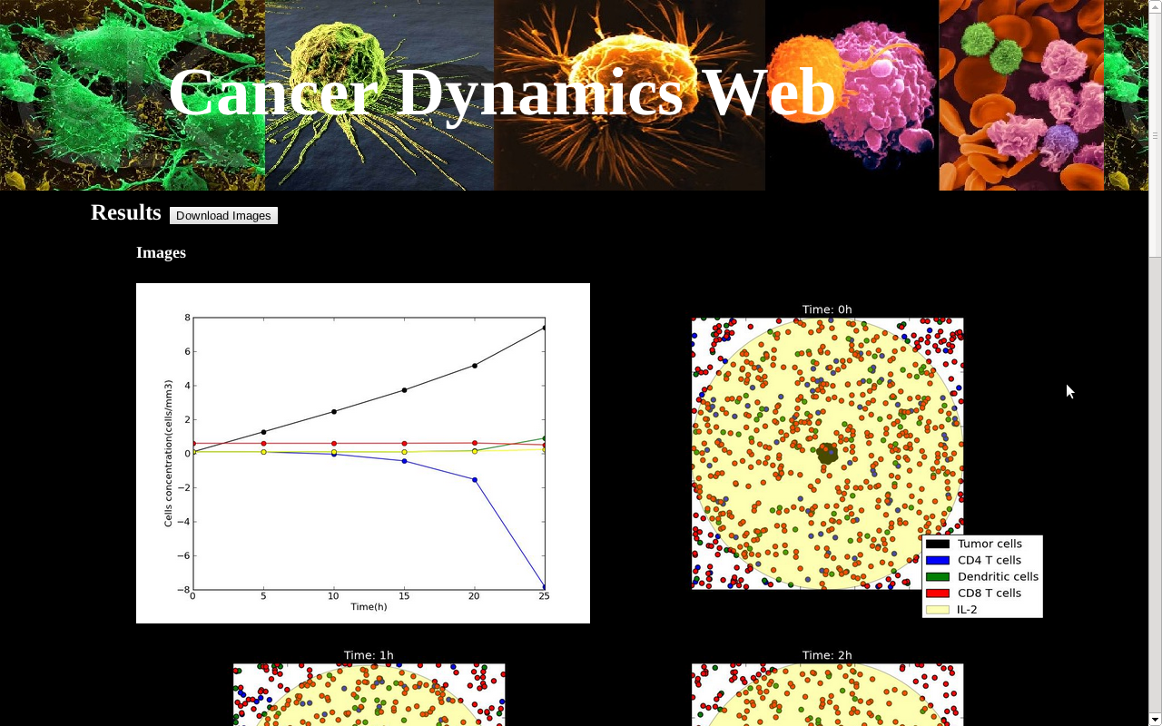 Website that shows the dynamics of a tumor by solving a system of ordinary differential equations.