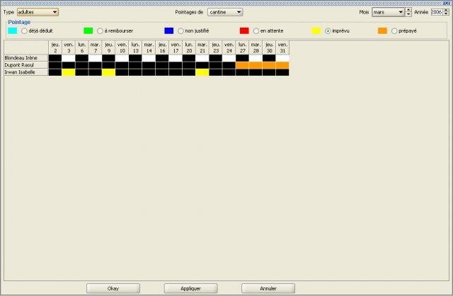 Gestion de cantine scolaire initialement développée pour une mairie. Les principales fonctionnalités sont : gestion des familles et enfants et adultes, commandes traiteur, pointages et réservations, ...