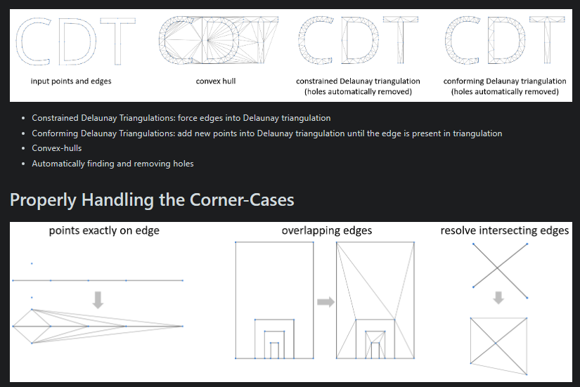 CDT is a C++ library for generating constraints or conforming Delaunay triangulations.