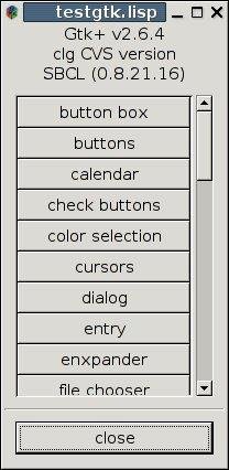 clg is an interface to the GTK+ graphical toolkit for the CMUCL, SBCL and CLISP implementations of Common Lisp.