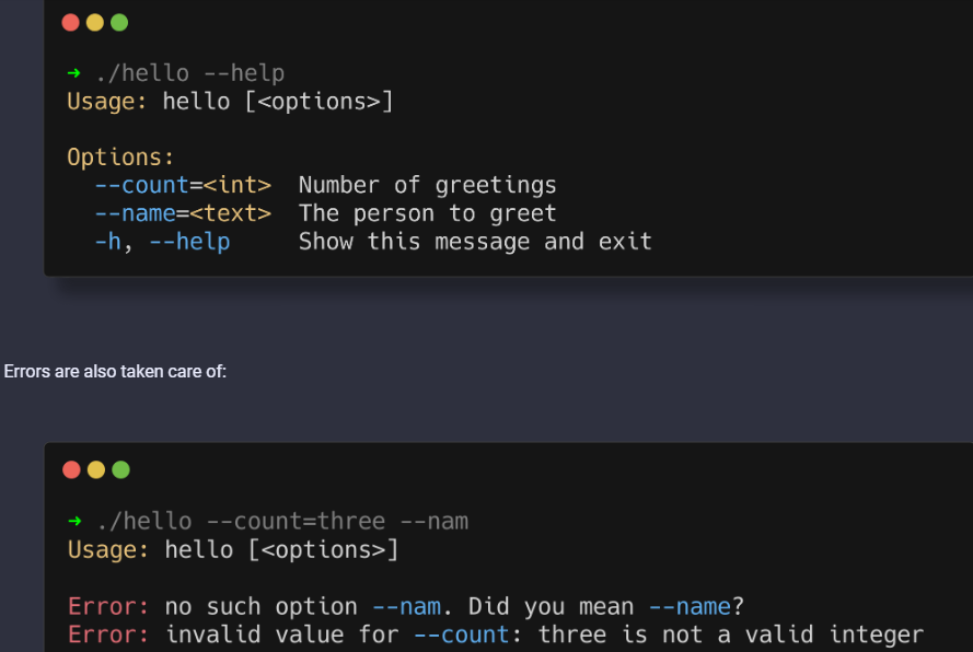 - Generation of help output and shell autocomplete scripts