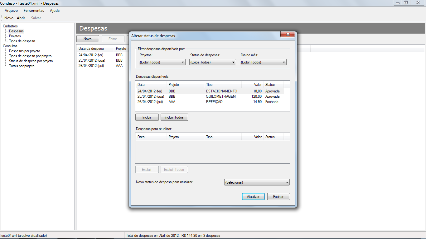 O objetivo do programa é disponibilizar as informações de gastos de forma organizada e rápida. O aplicativo pode ser útil para anotar despesas que deverão ser reembolsadas ou simplesmente manter um registro para controle individual.
