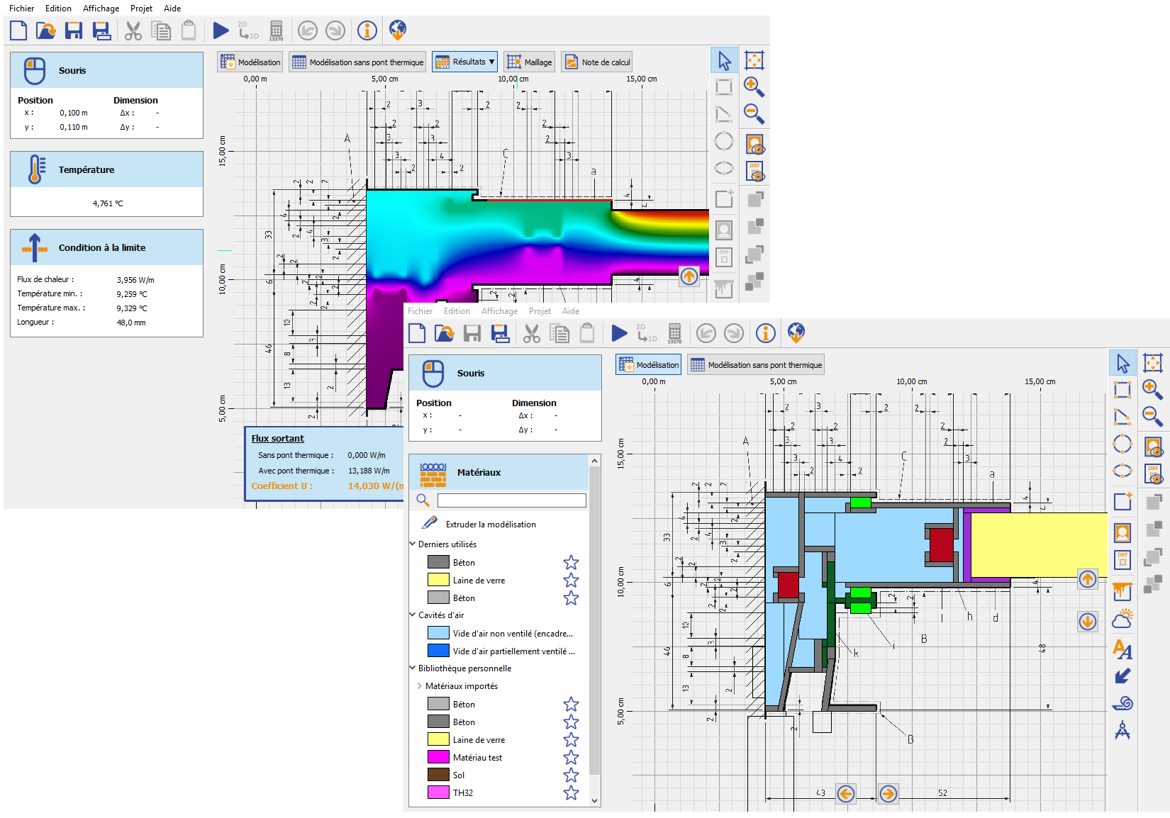 - Logiciel conforme aux normes EN 10211, EN 10077-2 et EN 13370 et aux RT 2005 et RT 2012