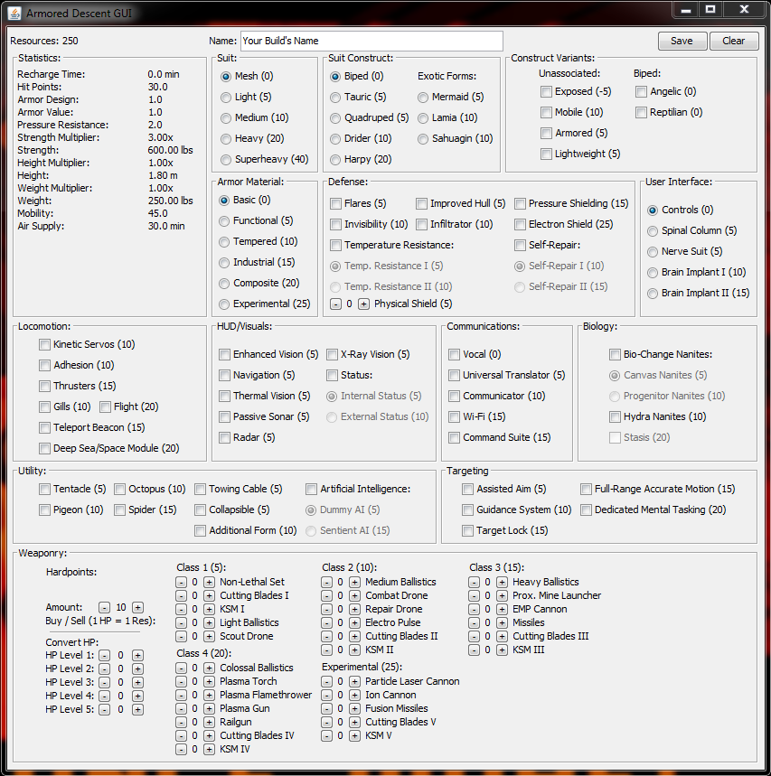 This simple GUI lets you build an "Power Armor CYOA" from scratch. When you're done, you can save your build as a .log-File.
