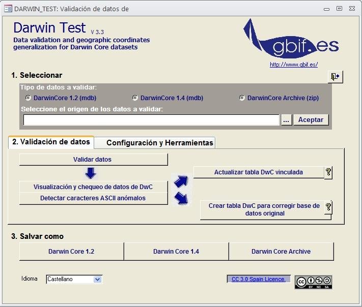 Darwin Test is a software application to validate and correct records from standards Darwin Core 1.2, Darwin Core 1.4 and Darwin Core Archive. It also can generalize or delete coordinates in those records of the Darwin Core that are considered sensitive data.