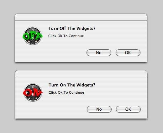 Twin automator applications to turn the dashboard off and on. You may wish to temporarily turn dashboard off to free up memory, so double click on the TurnOffWidgets application. Double click on TurnOnWidgets.app and dashboard is back as before.