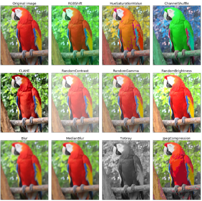 List of useful data augmentation resources. You will find here some links to more or less popular github repos, libraries, papers, and other information. Data augmentation can be simply described as any method that makes our dataset larger. To create more images for example, we could zoom in and save a result, we could change the brightness of the image or rotate it. To get a bigger sound dataset we could try to raise or lower the pitch of the audio sample or slow down/speed up. Keypoints/landmarks Augmentation, usually done with image augmentation (rotation, reflection) or graph augmentation methods (node/edge dropping) Spectrograms/Melspectrograms, usually done with time series data augmentation (jittering, perturbing, warping) or image augmentation (random erasing)