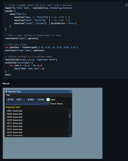 - Provides immediate-mode GUI system for tools and in-game editors