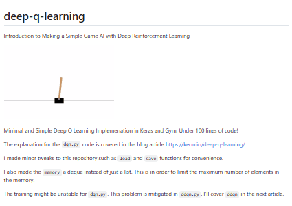 The deep-q-learning repository authored by keon provides a Python-based implementation of the Deep Q-Learning algorithm — a cornerstone method in reinforcement learning. It implements the core logic needed to train an agent using Q-learning with neural networks (i.e. approximating Q-values via deep nets), setting up environment interaction loops, experience replay, network updates, and policy behavior. For learners and researchers interested in reinforcement learning, this repo offers a concrete, runnable example bridging theory and practice: you can execute the code, play with hyperparameters, observe convergence behavior, and see how deep Q-learning learns policies over time in standard environments. Because it’s self-contained and Python-based, it's well-suited for experimentation, modifications, or extension — for instance adapting to custom Gym environments, tweaking network architecture, or combining with other RL techniques.
