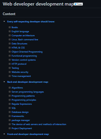 - Back-end developer development map: