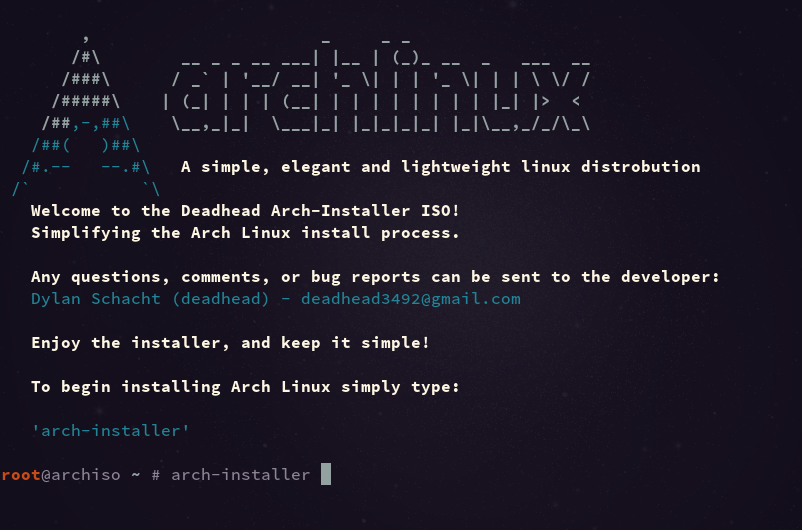 This installer is intended not only for beginners who want a fresh Arch Linux install without going through the long process of learning the install. But also for experienced Arch Linux users who wish to simplify and automate the task of installing Arch Linux.