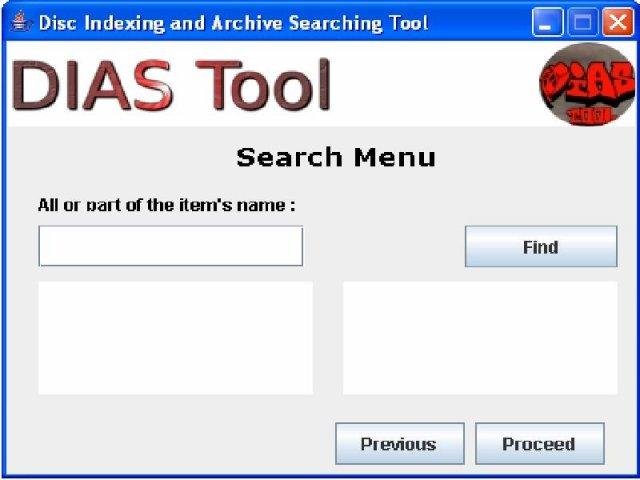 The DIAS Tool (Disc Indexing and Archive Searching Tool) is a program that will index a given disc, or directory, so that the database can be searched later for a given entries details. Including on wich disc it is.