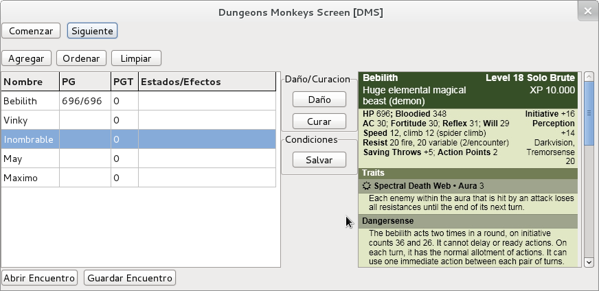 Software libre para utilizar junto con Dungeons & Dragons (R) Game desarrollado por Wizard of the Coast (R) a dirigir encuentros en las partidas de rol.