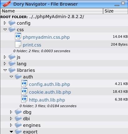 Dory Navigator is a folder and files navigator written in php. It is aimed to be fast, standard compliant, and able to load broad tree structures, and overall to be easy to use.