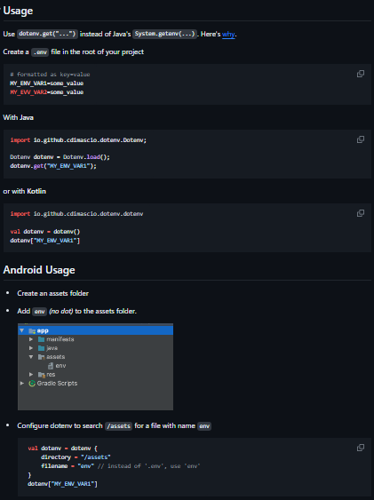 Storing configuration in the environment is one of the tenets of a twelve-factor app. Anything that is likely to change between deployment environments–such as resource handles for databases or credentials for external services–should be extracted from the code into environment variables. However it is not always practical to set environment variables on development machines or continuous integration servers where multiple projects are run. Dotenv loads variables from a .env file into ENV when the environment is bootstrapped.