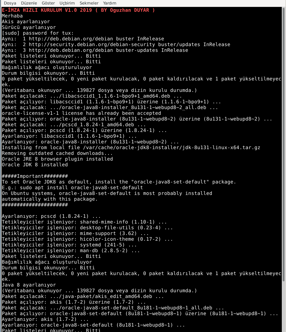 2- Yeni bir konsol ( Terminal Açın ) ve tırnaklar olmadan “e-imza-ayarla” yazın.