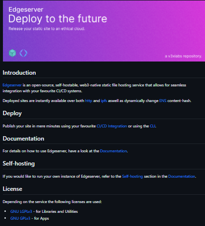 Edgeserver is an open-source, self-hostable, web3-native static file hosting service that allows for seamless integration with your favorite CI/CD systems. Deployed sites are instantly available over both http and ipfs as well as dynamically change ENS content-hash. Publish your site in mere minutes using your favorite CI/CD Integration or using CLI.