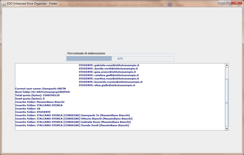 Il programma prende in input un file .xml, opportunamente strutturato e contenente i dati relativi ai docenti, corsi, classi e studenti. L'output è una struttura di cartelle opportunamente organizzate ed autorizzate per gestire i contenuti didattici (cartella di lavoro degli studenti, cartella di sola lettura dei contenuti su base settimanale, cartella privata tra il docente ed ogni singolo studente).