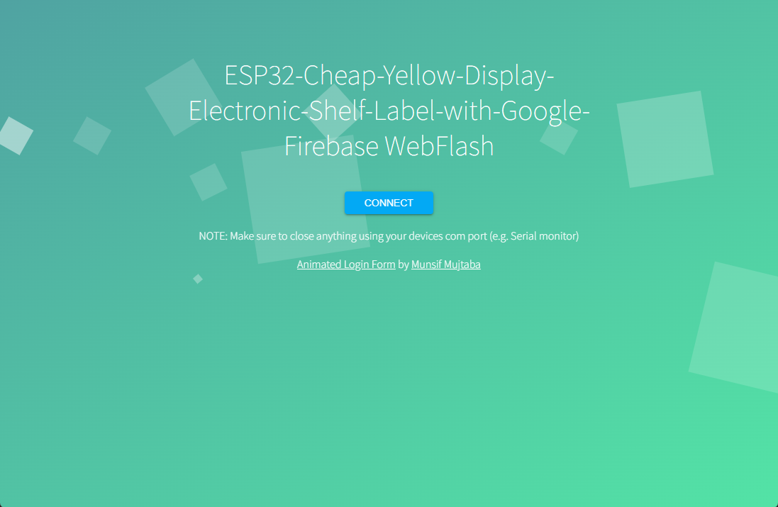 WebFlash: https://northstrix.github.io/ESP32-Cheap-Yellow-Display-Electronic-Shelf-Label-with-Google-Firebase/flash.html