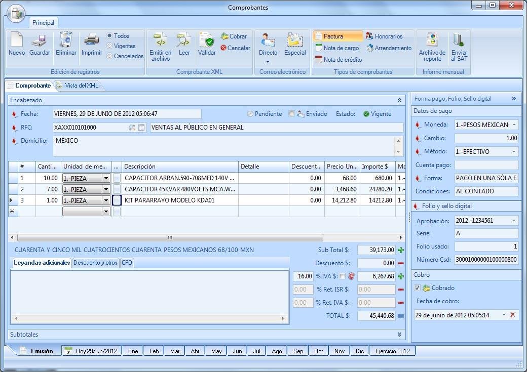Nuestro desarrollo soporta los tres esquemas de emisión de Comprobantes Fiscales Digitales existentes: CFD, CFDI y CBB. Así el Contribuyente puede adoptar uno de ellos de acuerdo con la regulación del SAT aplicable para Personas Físicas o Personas Morales; y en cada esquema, el sistema permite manejar diferentes tipos de documentos como: Facturas, Notas de Cargo, Notas de Crédito, Recibos de Honorarios y Recibos de Arrendamiento.