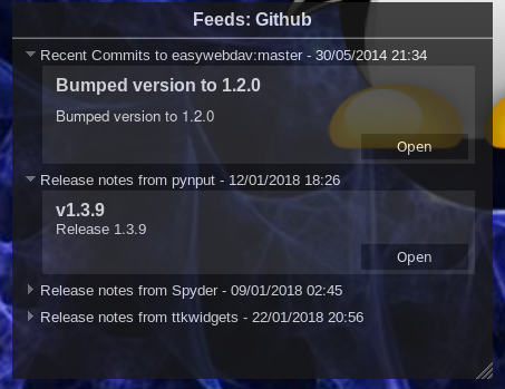 FeedAgregator is designed for Linux. It is written in Python 3 and relies mostly upon Tk GUI toolkit. The application is in the system tray, so it might not work with all desktop environments (see Troubleshooting).