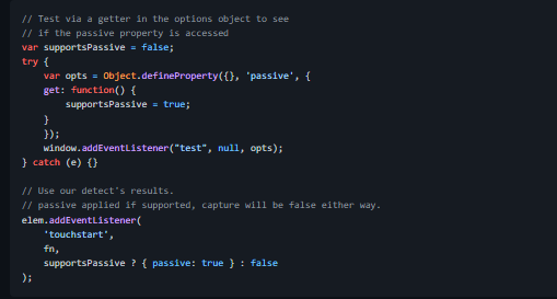 - Parameter of addEventListener to improve page scrolling performance