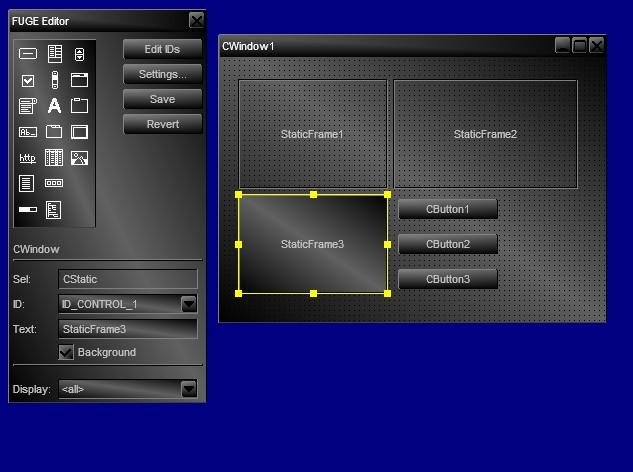 FUGE is a lightweight GUI library, intended to be used primarily in games and tools for game development. Supports graphics renderer adaptation, real-time layout editing, XML serialization, color schemes. Documentation contain tutorials with examples. Available on MS Windows and Linux.