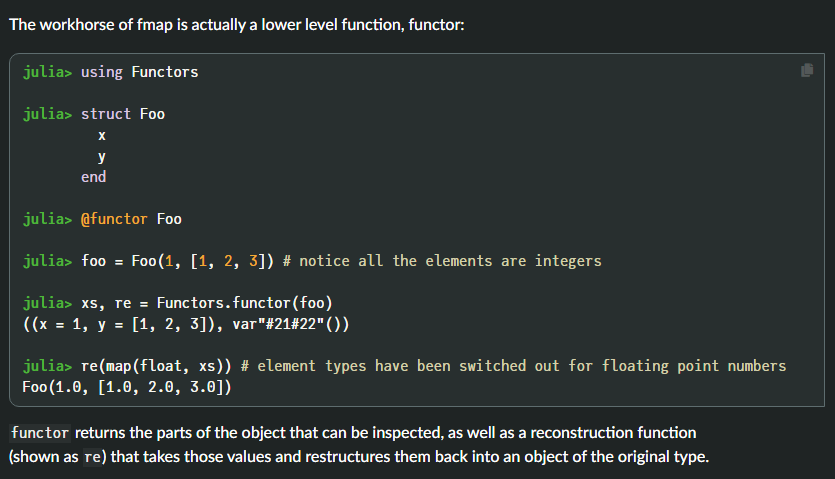 - Functors.jl provides fmap to make those things easy