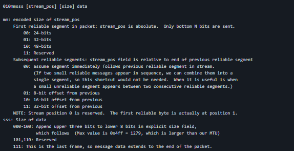 GameNetworkingSockets is a basic transport layer for games. A reliability layer significantly more sophisticated than a basic TCP-style sliding window. It is based on the "ack vector" model from DCCP (RFC 4340, section 11.4) and Google QUIC and discussed in the context of games by Glenn Fiedler. The basic idea is for the receiver to efficiently communicate to the sender the status of every packet number (whether or not a packet was received with that number). By remembering which segments were sent in each packet, the sender can deduce which segments need to be retransmitted. Encryption. AES-GCM-256 per packet, Curve25519 for key exchange and cert signatures. The details for shared key derivation and per-packet IV are based on the design used by Google's QUIC protocol. This library has shipped on consoles, mobile platforms, and non-Steam stores, and has been used to facilitate cross-platform connectivity. Contact us to get access to the code.