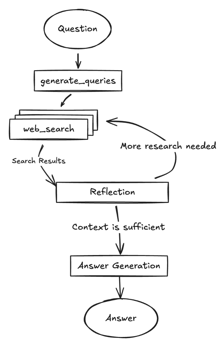 - Reflective reasoning loop for identifying and filling knowledge gaps