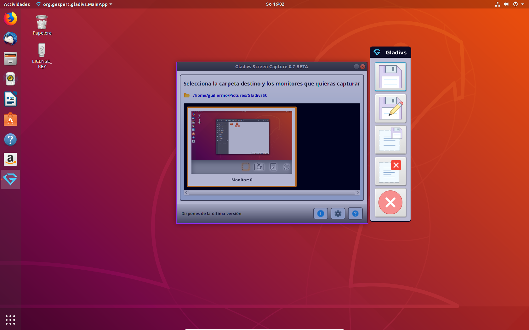 Gladivs SC allows you to take screenshots from all monitors in your system. You can choose what monitors you want to capture from. You only have to select a destination folder for the captures and press the [Print Screen] button to perform captures. Now it's very simple. Also you can capture a region in your monitor. In this new version you can choose the destination of the capture directly from an options window that appear after screenshot is taken.
