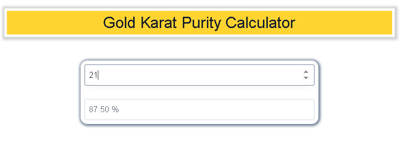 It is a WordPress plugin built using ReactJS and PHP. This simple tool calculates gold purity based on the given karat. The user inputs the karat value, and the calculator determines the corresponding gold percentage.