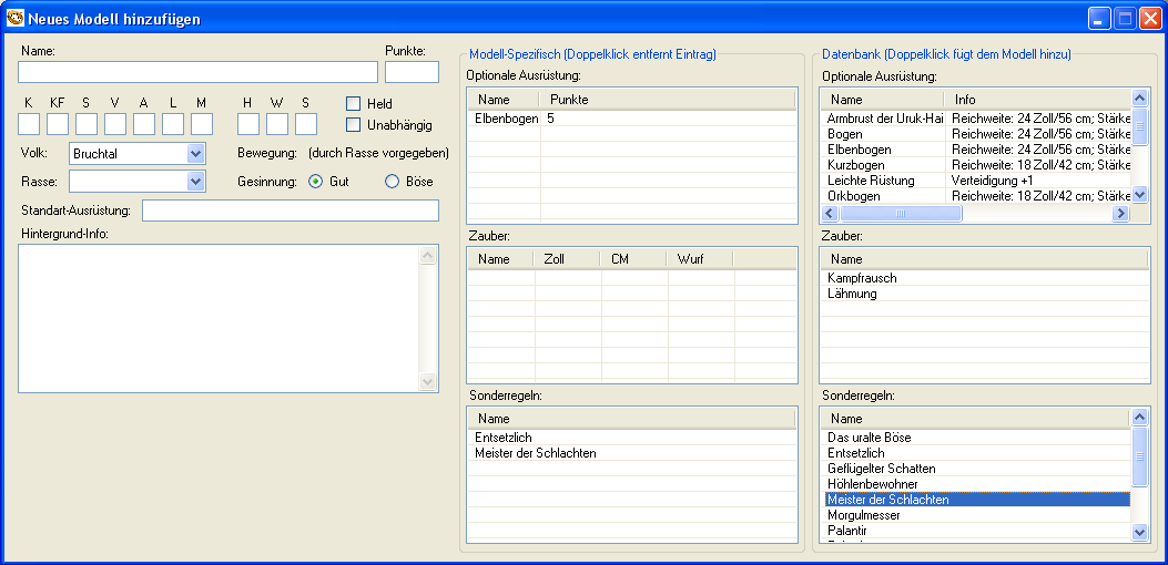 Es besteht die Möglichkeit einzelne Regeln, Zauber, etc. nachzuschlagen, sowie die Daten der einzelnen Modelle anzuschauen.
