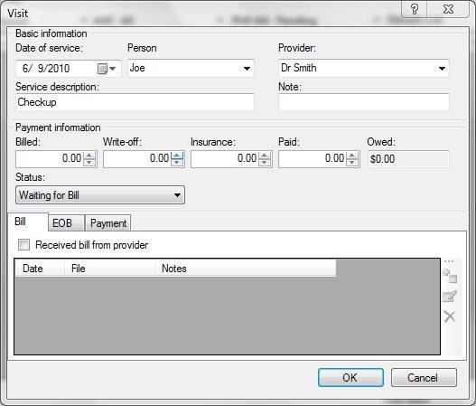 An application to help track health care expenses, payments, etc... The program is written in C# with .Net 4.0. For a database, it uses db4objects under the GPL license (http://www.db4o.com/)