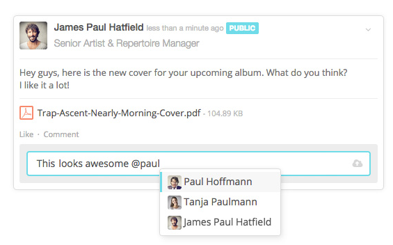 - Write posts and updates, share files, like and comment just the way you want it