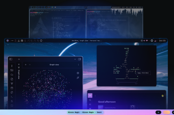 Hyprland is a highly customizable dynamic tiling Wayland compositor that doesn't sacrifice on its looks. It provides the latest Wayland features, is highly customizable, has all the eye candy, the most powerful plugins, easy IPC, much more QoL stuff than other wlr-based compositors and more.