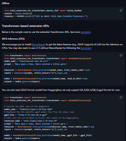 Intel Extension for Transformers is an innovative toolkit designed to accelerate Transformer-based models on Intel platforms, including CPUs and GPUs. It offers state-of-the-art compression techniques for Large Language Models (LLMs) and provides tools to build chatbots within minutes on various devices. The extension aims to optimize the performance of Transformer-based models, making them more efficient and accessible.