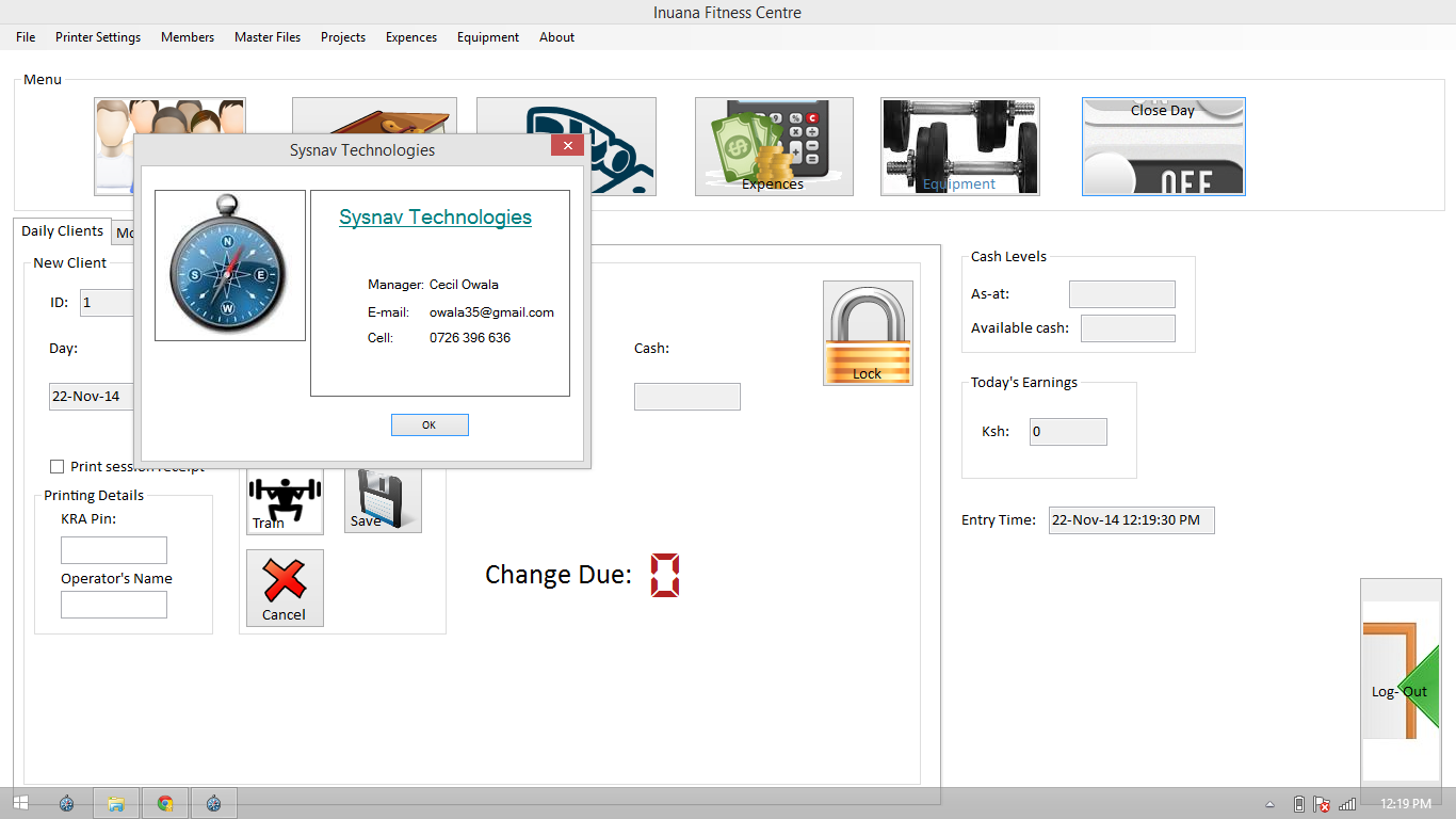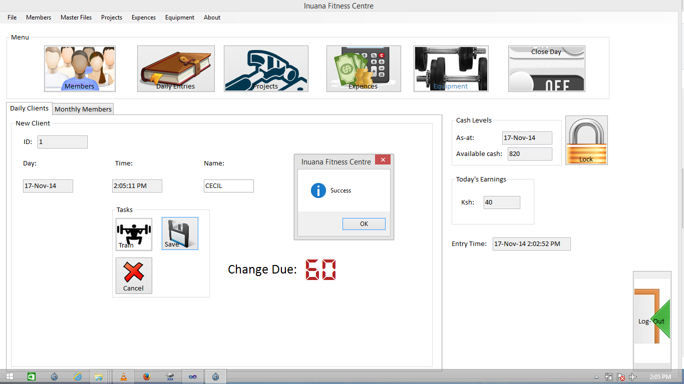 This is a gym management software for Inuana Fitness centre and is used to manage their finances, projects, members and equipment.