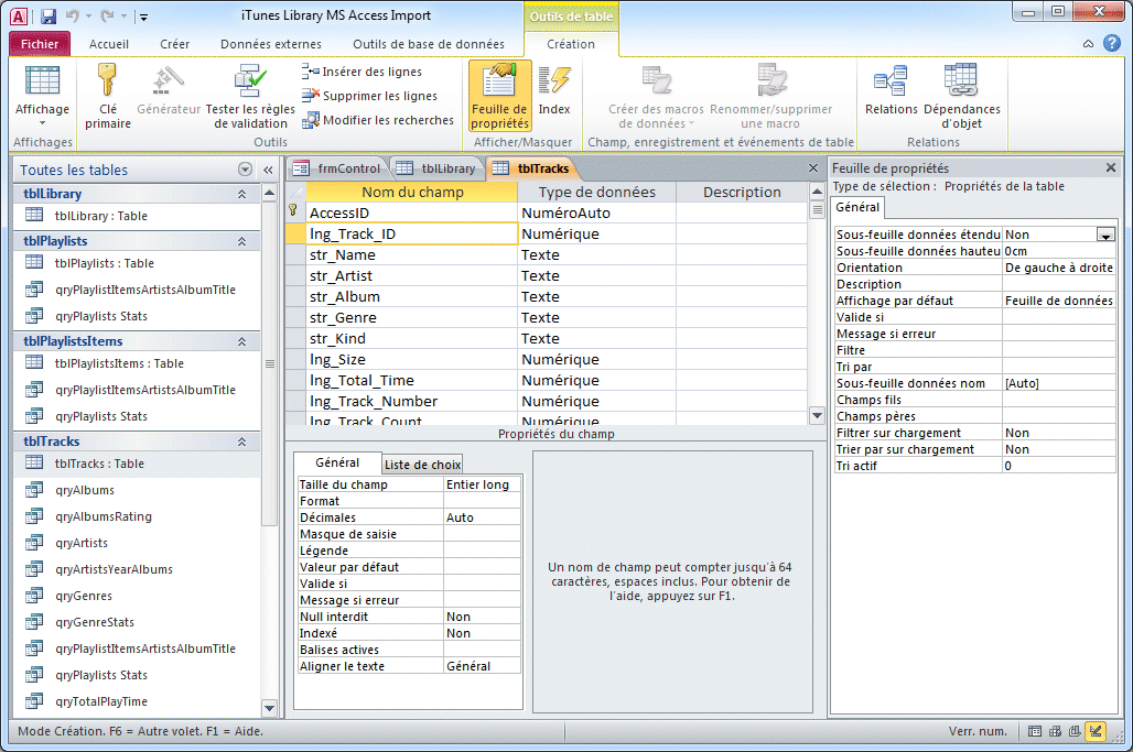 iTunes to Access for Reports is a MS Access application that imports iTunes player catalog data allowing the creation of custom reports. The program reads the iTunes Library.XML file and imports tracks and playlists data.