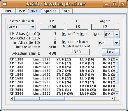 JaKaR is a tool for precomputing battle results in the German browser game Freewar. Therefore, the program is only available in German.