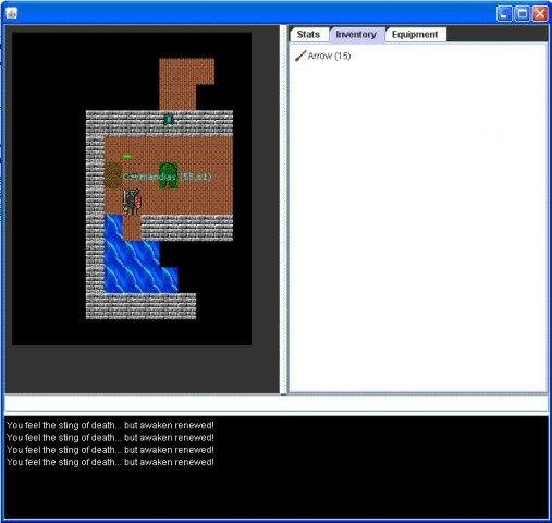 This project is a pure Java implementation of an MMORPG / mud, server and client. It is a fully persistent world, backed by a MySQL datastore. Features NPC AI, shard-level scalability, and persistent items, and a particle attack system.