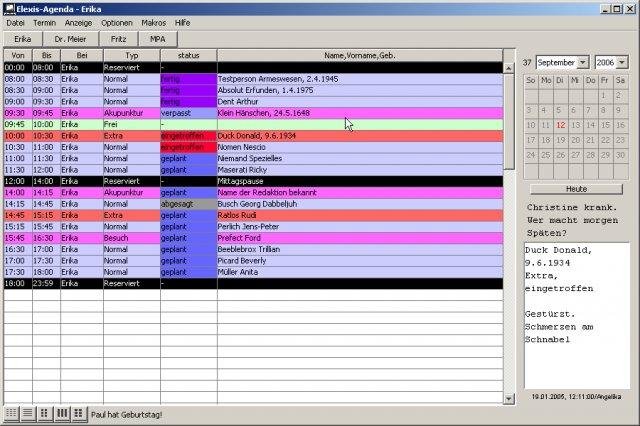 A Multiuser Agenda primarly developed for the needs of a medical practice, but flexible enough to be useful for any other professional environments. Written in 100% Java, Storage on any Jdbc-Compliant database server. German language only, sorry.