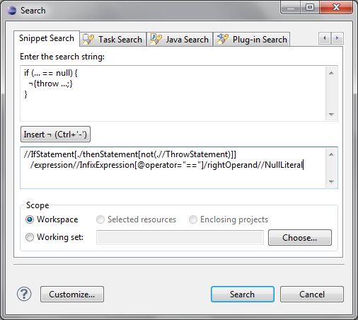 Search Java sources with example code snippets.